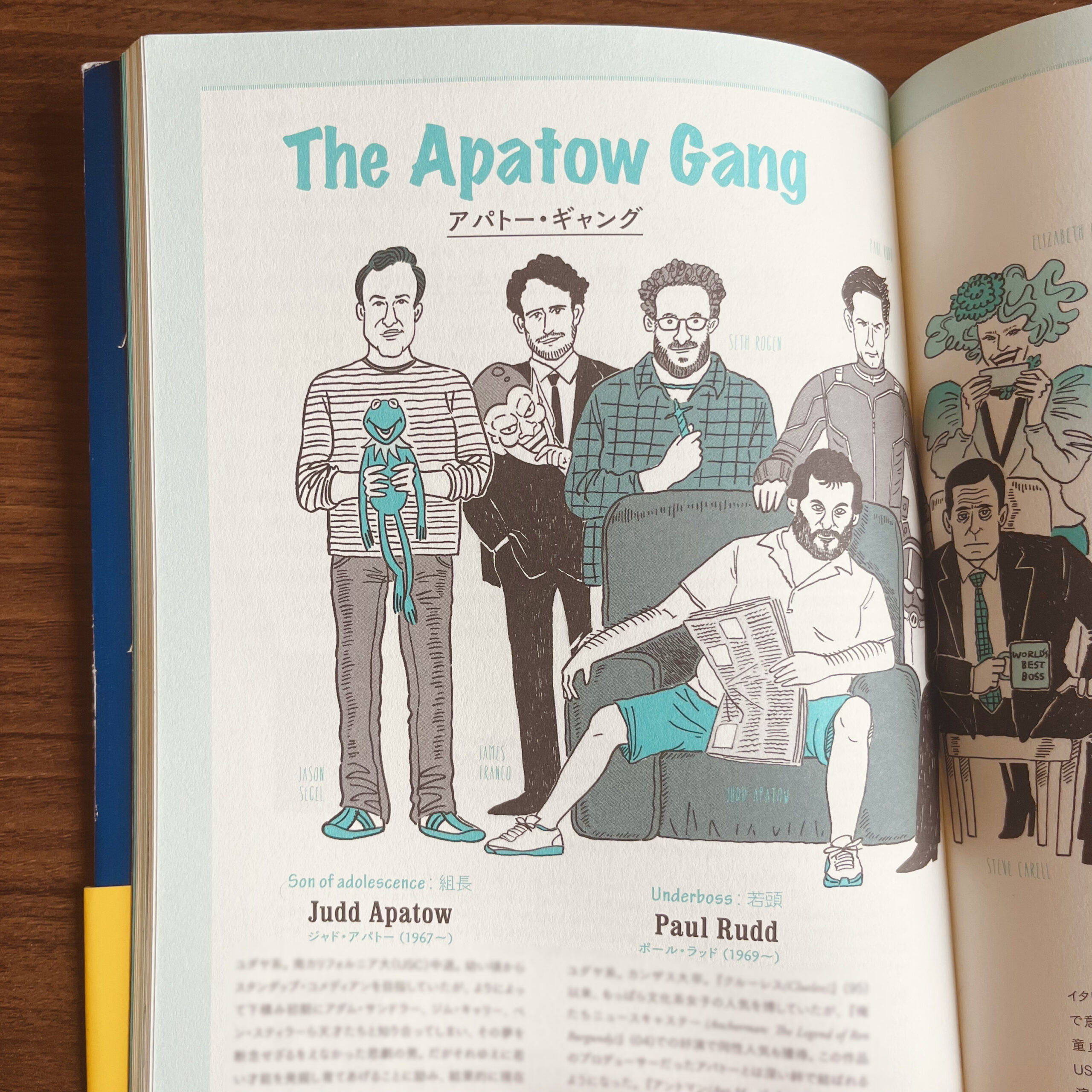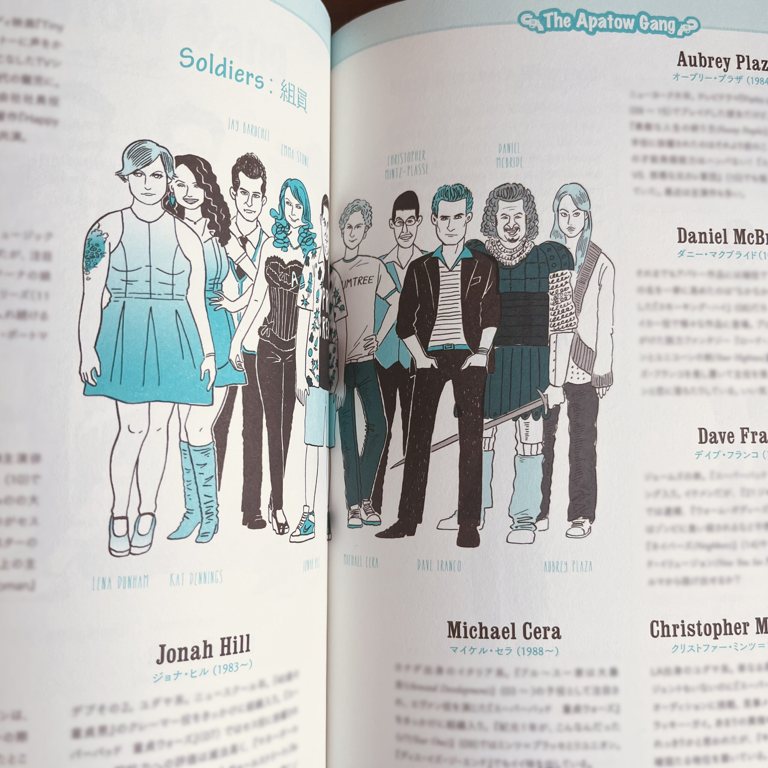 実際の映画の登場人物を引用した学内属性をはじめ、アパトーギャングなる一座の面々、各章扉など多数描いています。